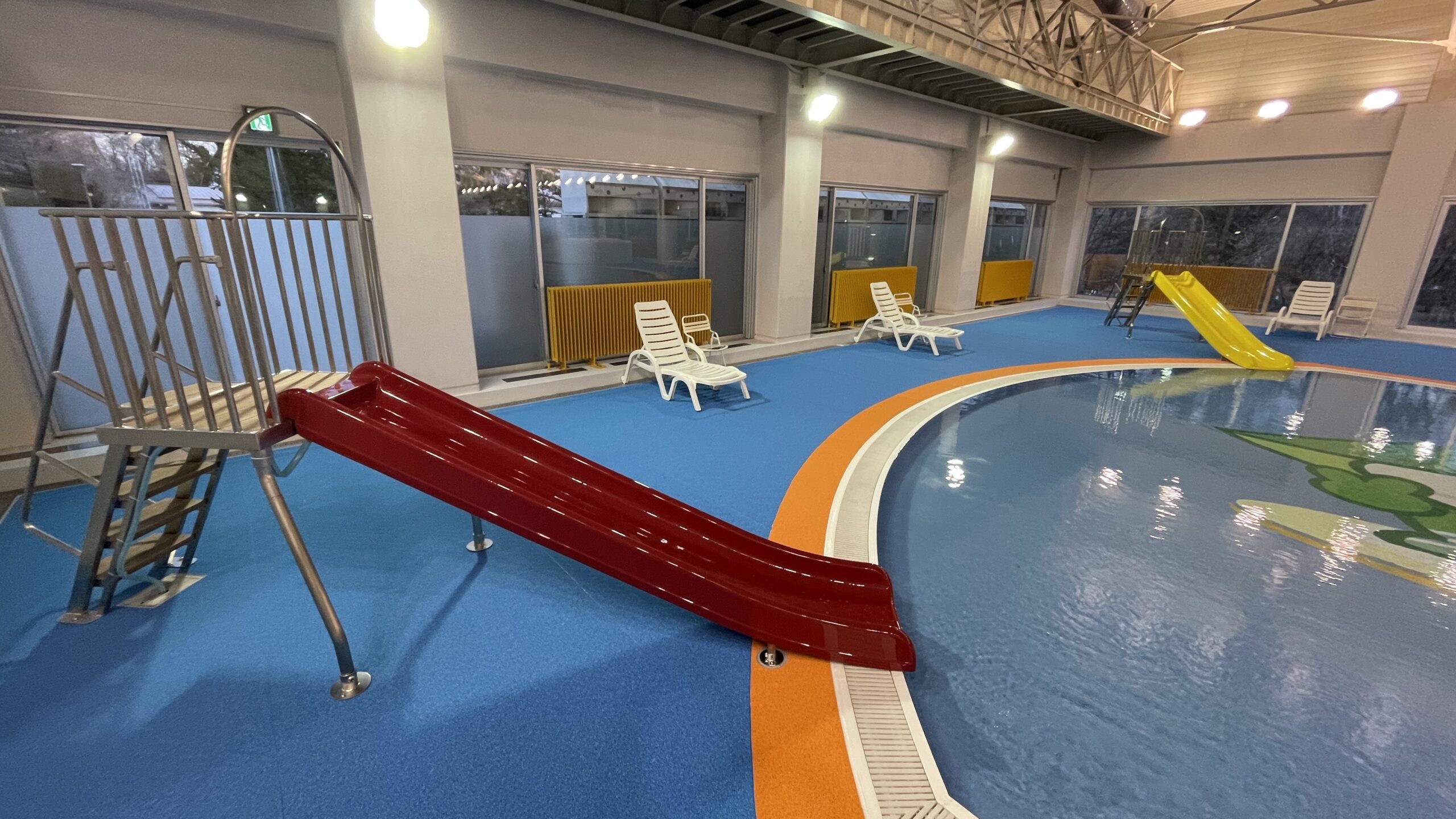 プールサイドフロアの張り替え、子供用滑り台の入れ替えを実施いたしました。